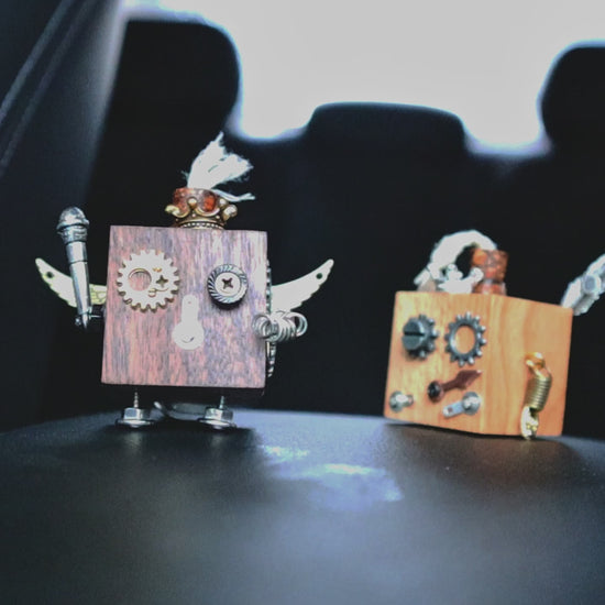 Create a cute wooden robot air freshener for your car or desk! This DIY kit includes everything you need — tools, parts, and a tiny glass bottle for essential oil or perfume (fragrance not included).